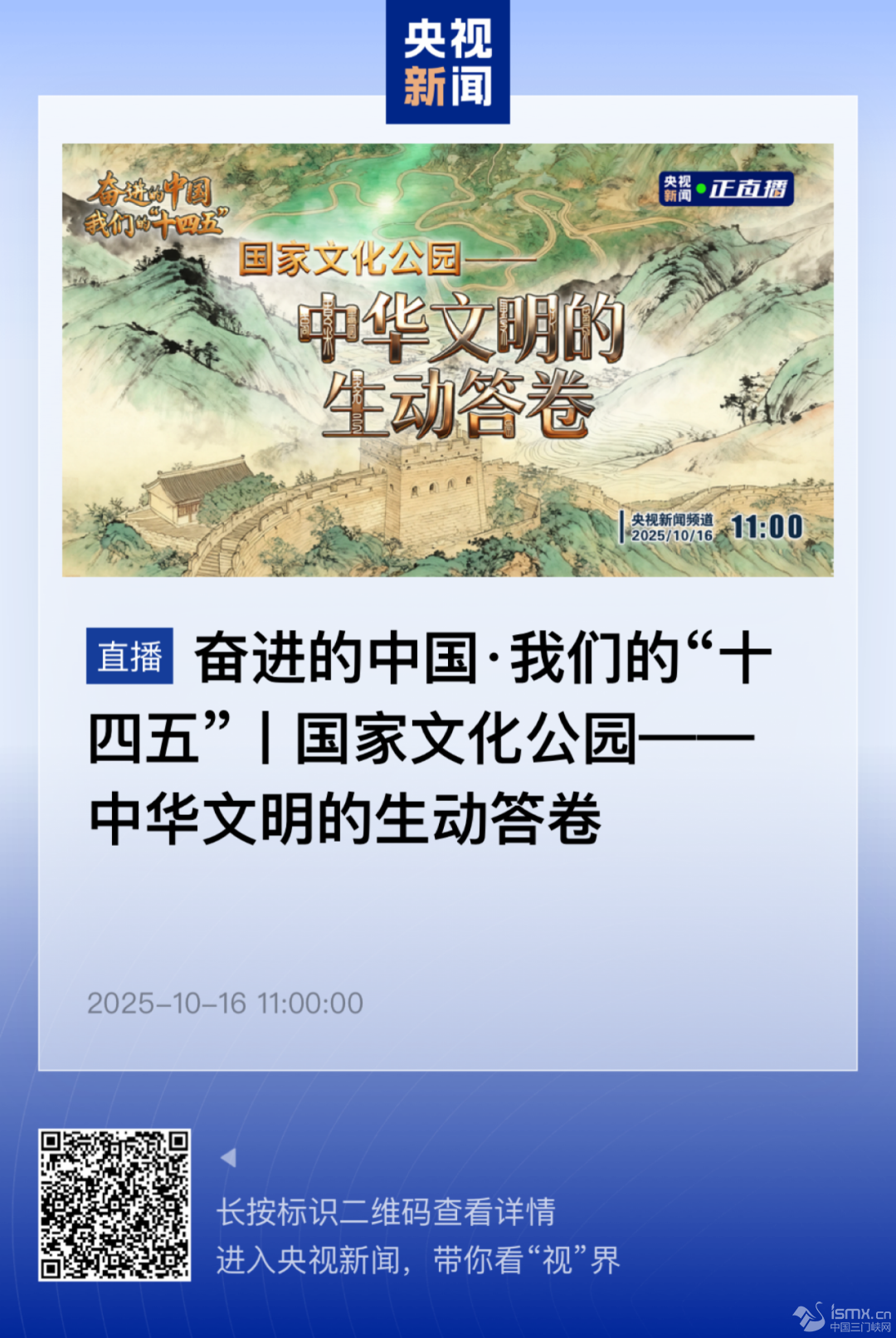 【直播預(yù)告】奮進(jìn)的中國·我們的“十四五”| 國家文化公園——中華文明的生動答卷